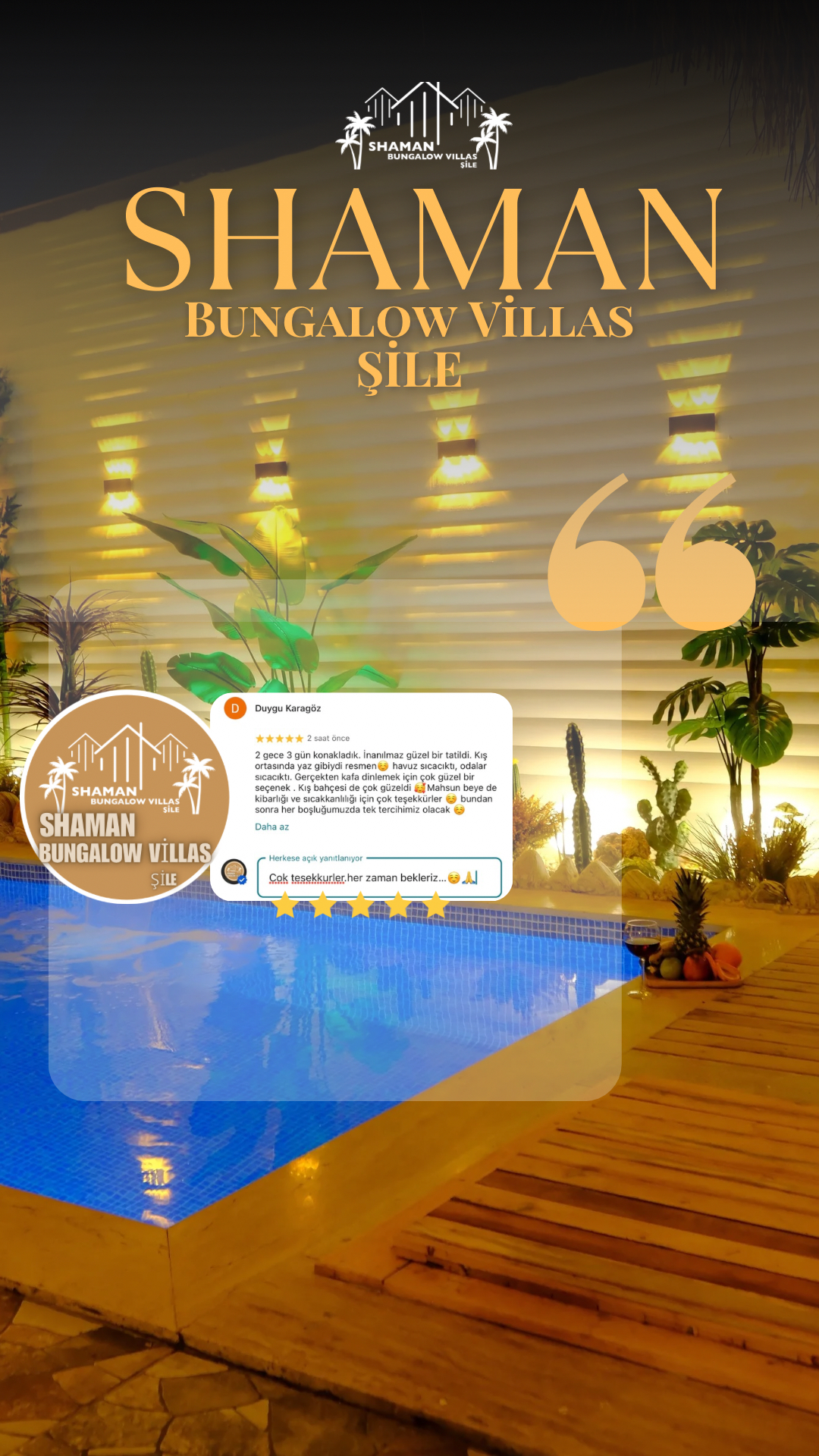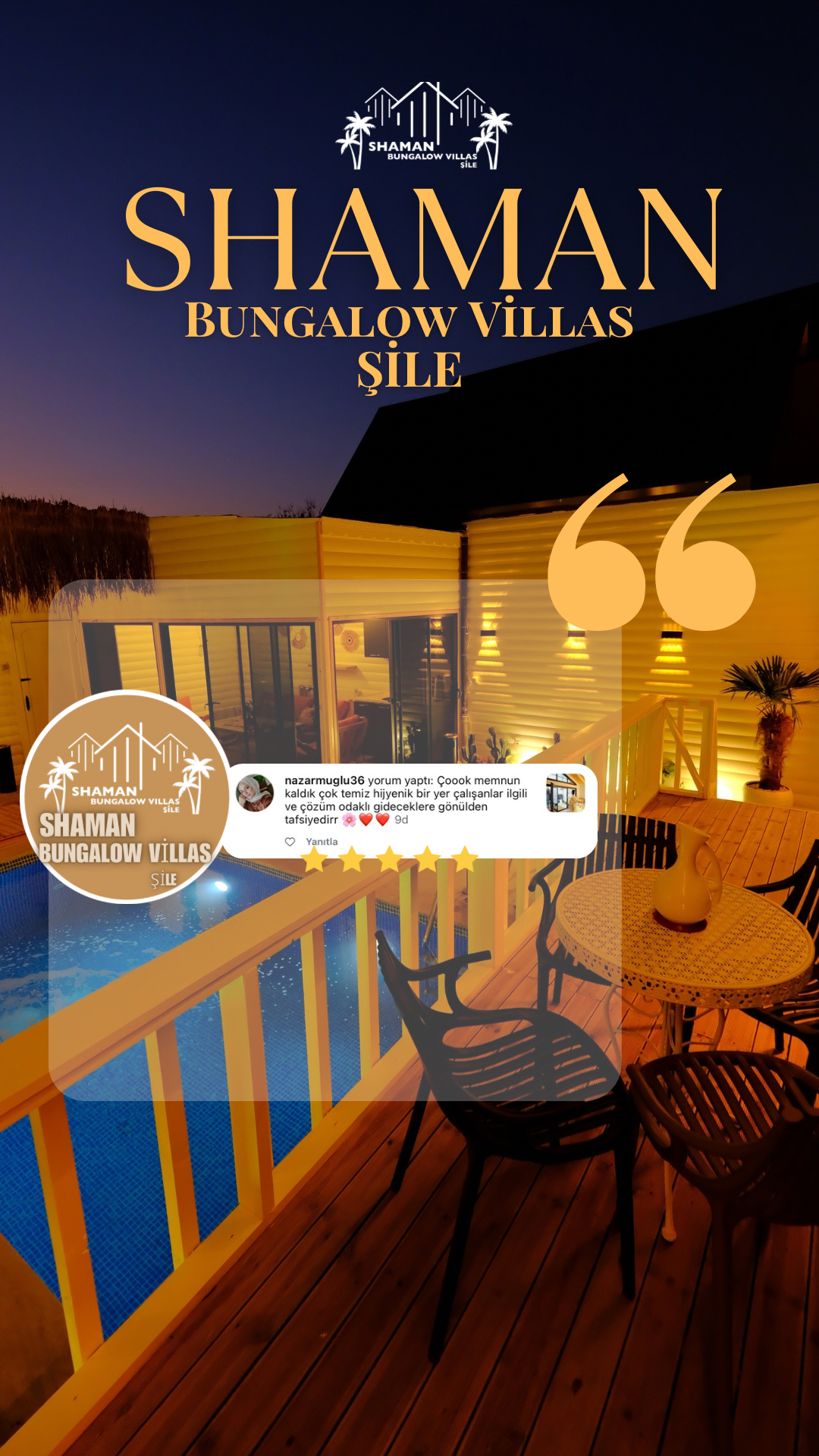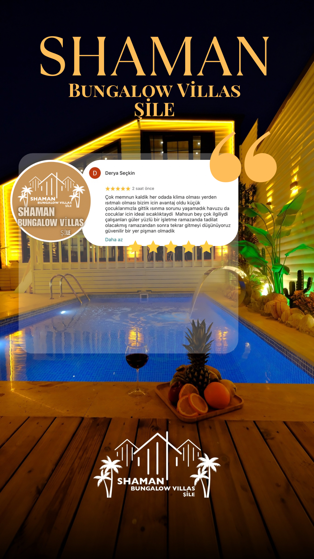 Shaman Bungalow Villas, yalnızca bir konaklama değil; yılın her döneminde keyifle vakit geçirebileceğiniz özel bir yaşam alanı sunar. Kış bahçesi ve şömine ile serin akşamlarda sıcak bir atmosfer, güvenlik sistemiyle huzurlu bir ortam ve tam donanımlı yaşam alanlarıyla konforlu bir tatil deneyimi yaşarsınız. Ailenizle ya da sevdiklerinizle doğanın içinde, güvenli ve rahat bir konaklama için tasarlanmıştır.
